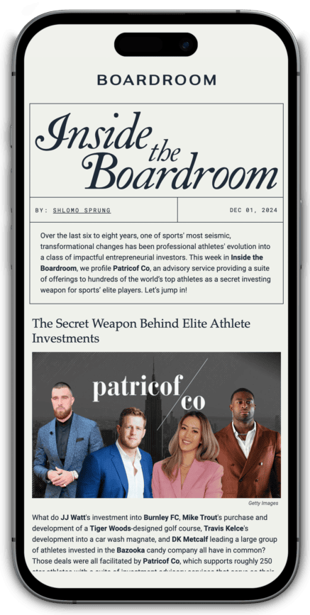 Boardroom’s sister company, Boardroom Sports Holdings, features investments in emerging sports teams