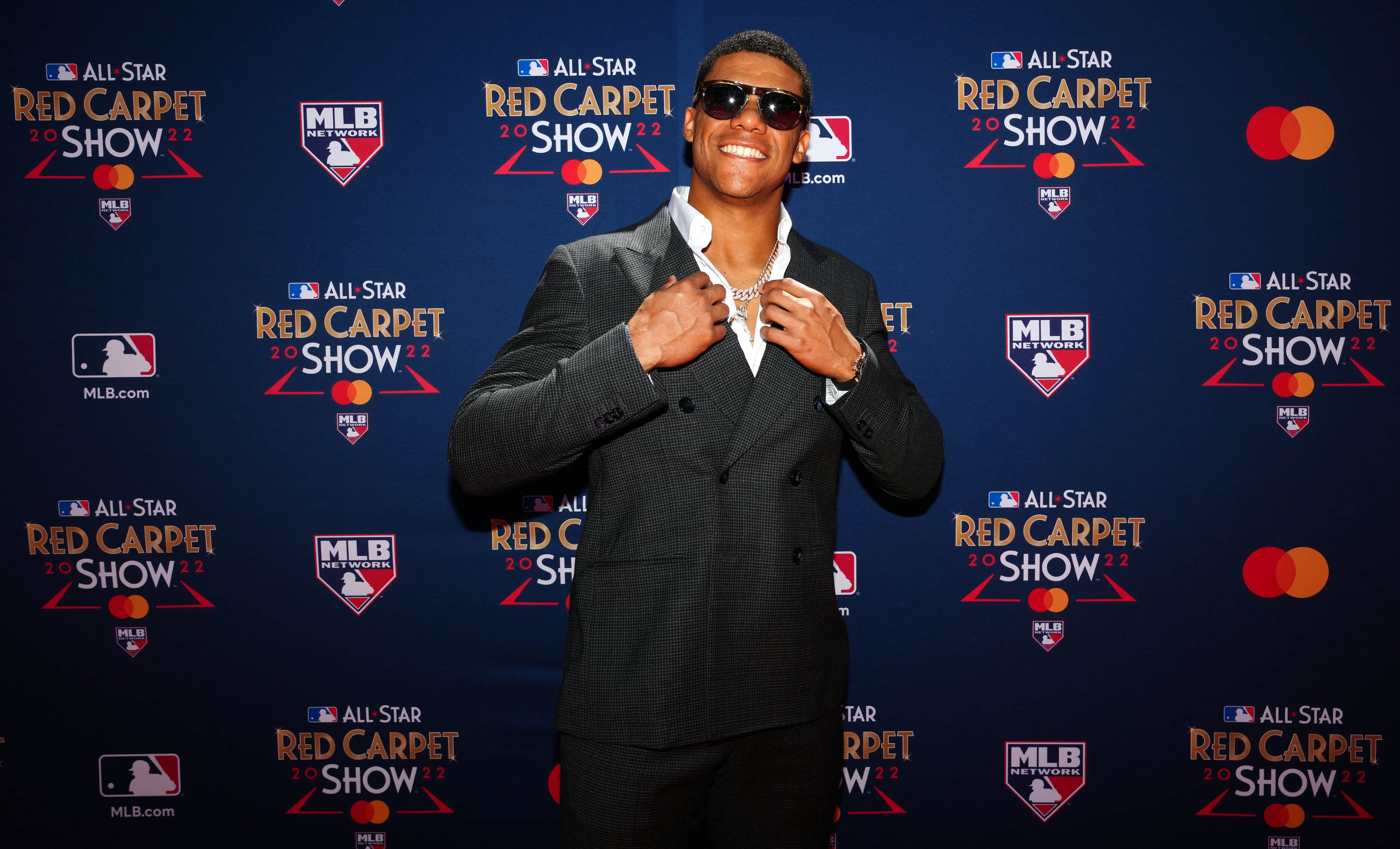 The 23-year-old Washington Nationals superstar slugger was just coming off a win in the Home Run Derby at Dodger Stadium when he spoke to Boardroom last week on the red carpet at L.A. Live prior to the All-Star Game. Despite the trade rumors currently surrounding the Dominican Republic native, Soto continues to excel. Sporting a gray double-breasted Giorgio Armani suit, Soto discussed his derby interaction with Bad Bunny, his favorite player to watch outside of baseball, and what he’d be doing if he wasn’t smashing homers on the field.
