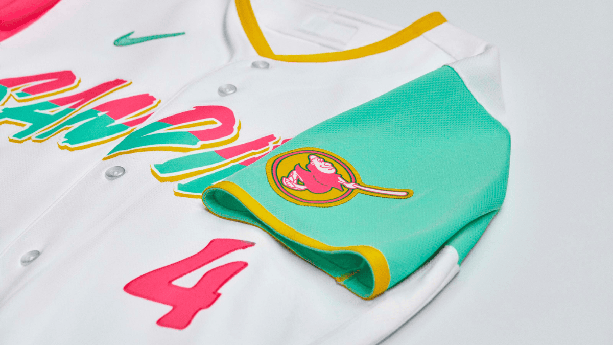 The white jerseys feature pink and teal lettering with yellow accents and showcase vintage California typography meant to mimic weathered beach signs. The final City Connect jerseys unveiled by Nike and Major League Baseball in 2022 (after the Rockies, Astros, Royals, Angels, Brewers, and Nationals), the new Padres unis will debut on July 8 when they host the San Francisco Giants at Petco Park.