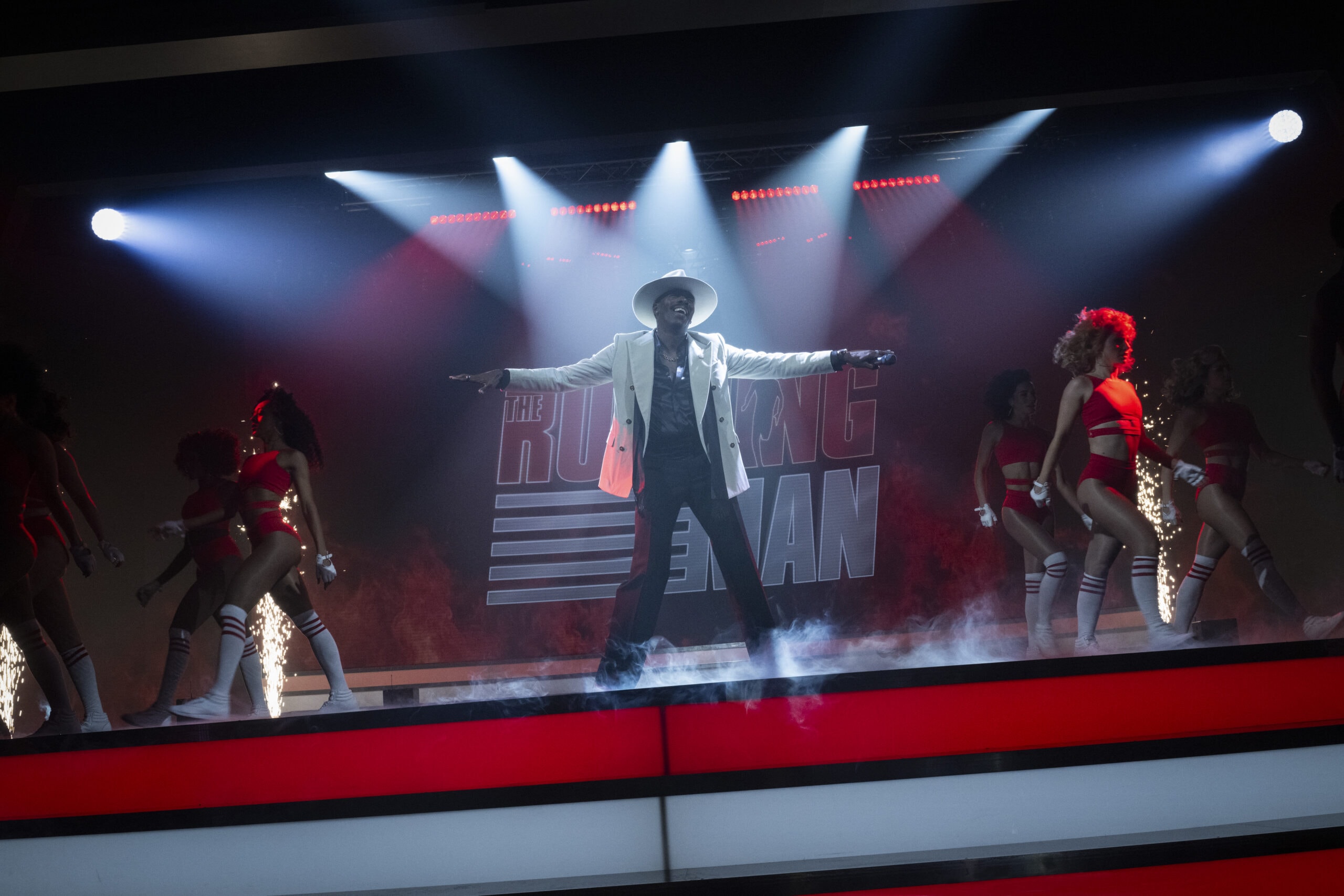 Slumside feels starved of resources — down to something as small as socks — while the Network’s production floors are glossy, oversized, and steeped in corporate dread. The film tracks Ben from the moment he signs up for the show. Cameras sit everywhere throughout cities to track the hunt, and the show’s host Bobby T. (Colman Domingo) is part ringmaster and part propagandist, and audiences at home are offered prizes to turn runners in.